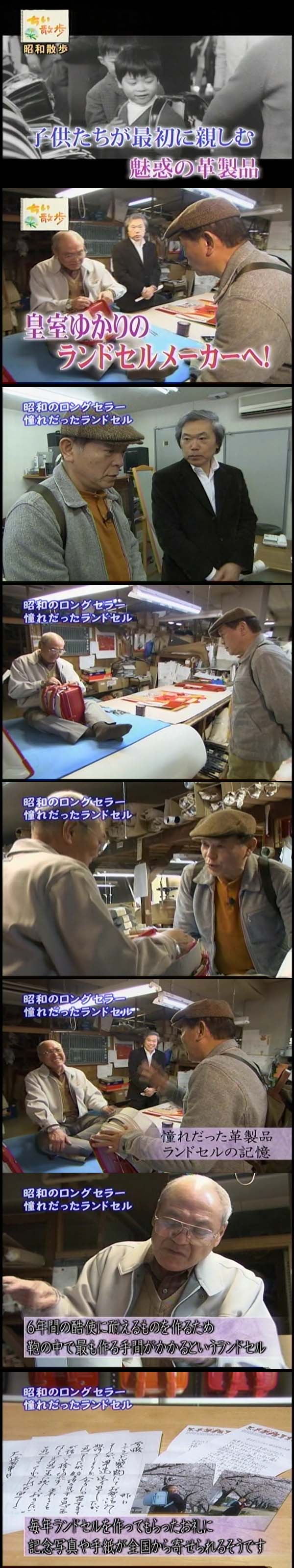 「モノ作り」に造詣が深い地井さんと、我が社の職人との会話がはずみ、手縫い商品やランドセルなどを興味深そうにご覧いただきました。 地井さん(大峡製『枕ポーチ』のユーザーでもあります)の絶妙のトークのおかげで、反響モノ凄く、放送後は電話鳴りっぱなし状況。ご覧いただきましたお客様には厚く御礼申しあげます。