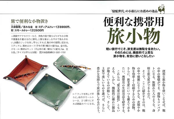旅の達人が愛用する便利な携帯用「旅小物」 ・旅先での快適さを約束する小物たち 【忘れな盆】 【1077】ラージトレイ 【1078】ミディアムトレイ 【1079】スモールトレイ