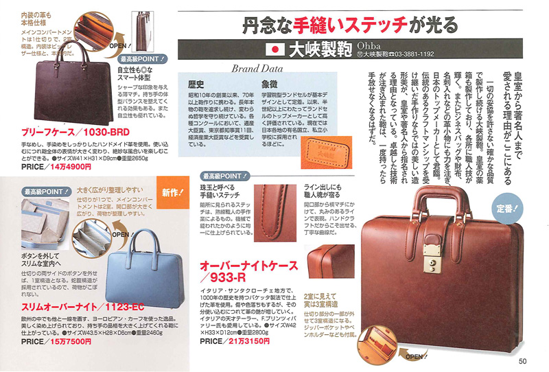 丹念な手縫いステッチが光る 大峽製鞄 皇室から著名人まで愛される理由がここにある 【933-R】オーバーナイトケース 【1030-BRD】オールレザーブリーフ 【1123-EC】スリム・オーバーナイト