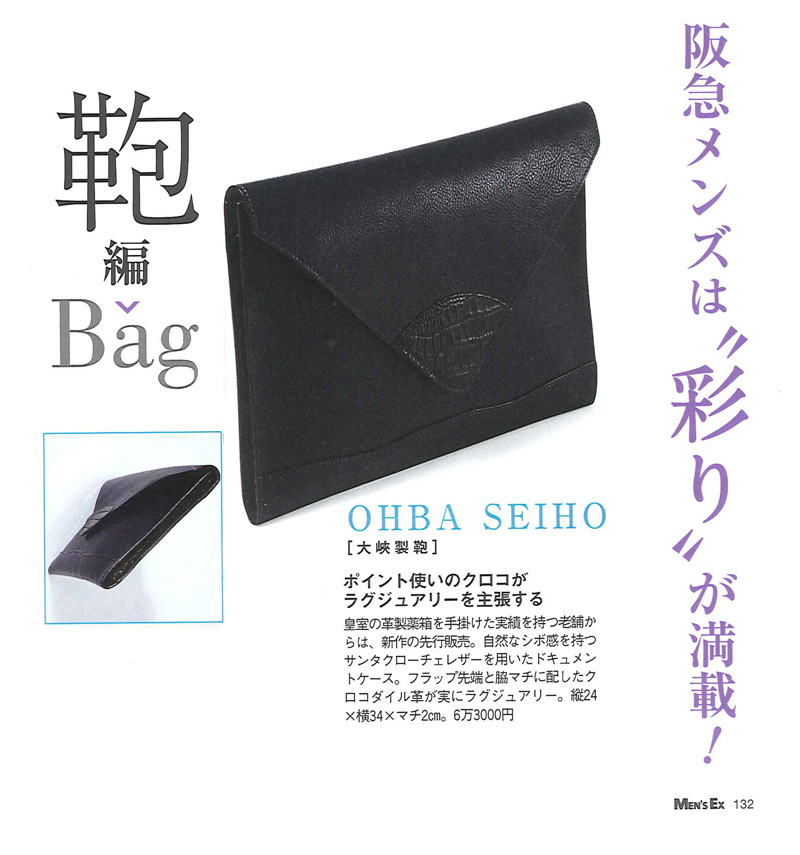 阪急メンズは“彩り”が満載! 鞄編 自然なシボ感を持つサンタクローチェ・レザーを用いたドキュメントケース。 フラップ先端と脇マチに配したクロコダイル革が実にラグジュアリー。