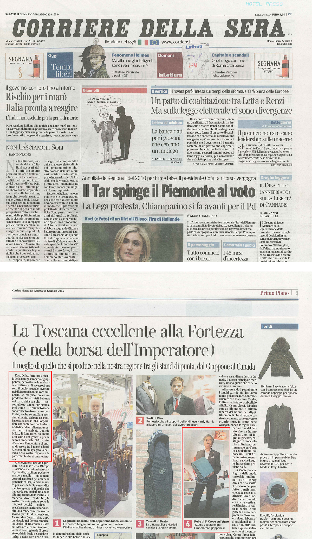 “私は時を経て味わいが出てくる革を使用して製品を作ることが好きです。トスカーナ地方で作られている革は使うにしたがい、色やツヤが深まり傷をつけてしまっても自然に傷がなじんで目立たなくなっていきます。”と大峽氏はPITTI UOMOの自社のスタンドで語った。