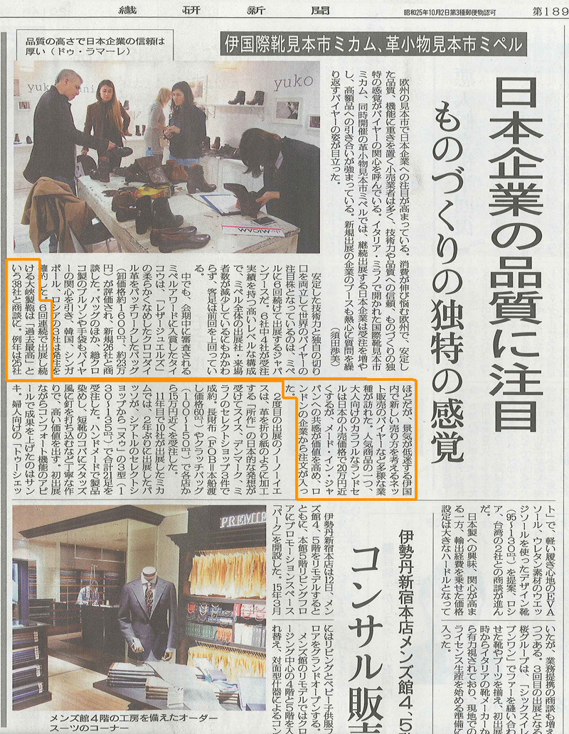 「繊研新聞」2014年3月13日発行