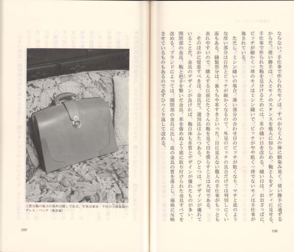 「上質な鞄は、職人の手仕事で作られていなければならない。手仕事で作られたモノは、すべからく人の体に馴染み易く、使い勝手に通ずるからだ。」 「上質な鞄の最大の条件は鞣しである。写真は東京・千住の大峡製鞄のダレス・バッグ(筆者蔵)」