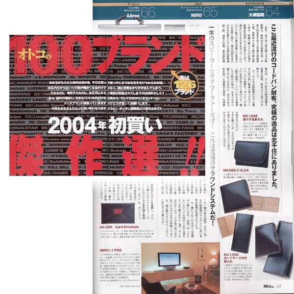 オトコの100ブランド 2004年初買い傑作選!! ここ最近流行のコードバン財布。究極の逸品は北千住にありました。 「生産数が超少ないだけに入手も難しいが、その仕上がりは半年でも一年でも待ちたいと思わせる一生モノのアイテムなのだ。」