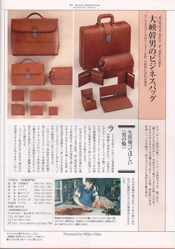 「大峡幹男のビジネスバッグ」と題して大峡製鞄の世界に誇る逸品を紹介。