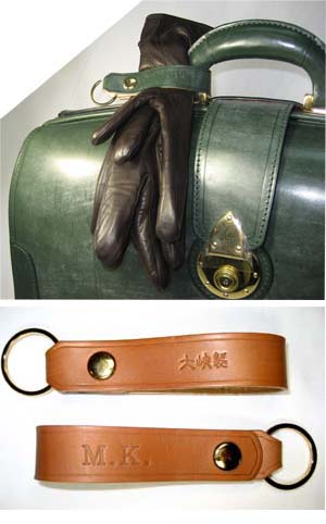 ダレスフェアーにご協力いただいた御礼に、ダレスバッグと同じ革、同じ色のイニシャルリングにお客様のイニシャルを刻印してお贈りしています。