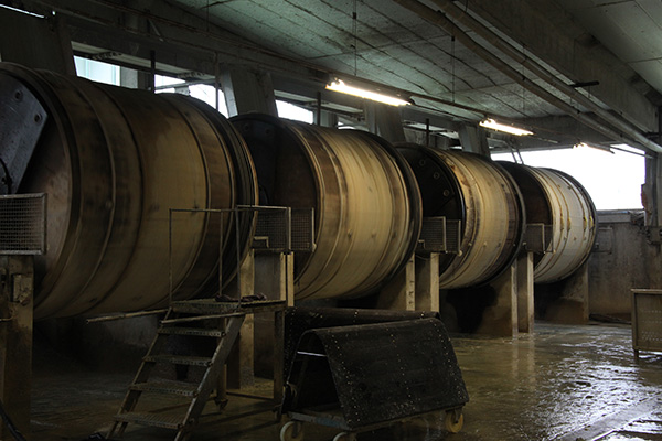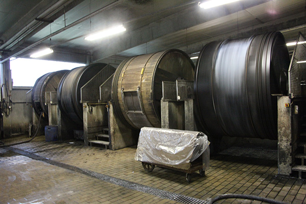 タンナーでは見慣れた下なめし用のタイコ、カーフ専用なので、サイズも小さい。