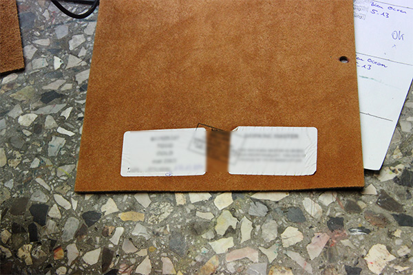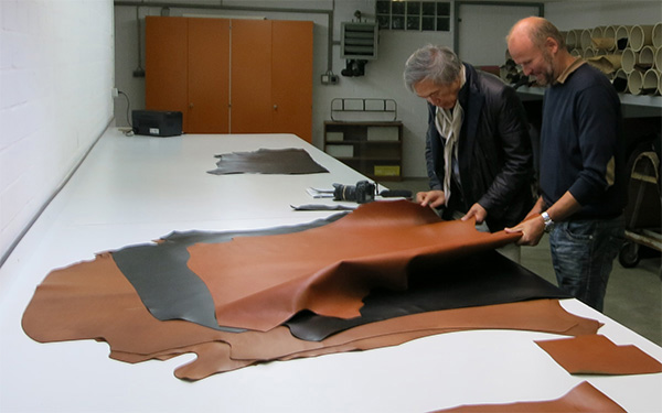 社長自ら、下鞣しされた材料に目を通しそれぞれの革の厚度、柔軟さ、銀面美観などを瞬時に読み取り、この段階で得意先、ブランド別に仕分ける。 エルメスはじめ各メゾンから絶対の信頼をおかれる理由はここにある。
