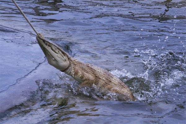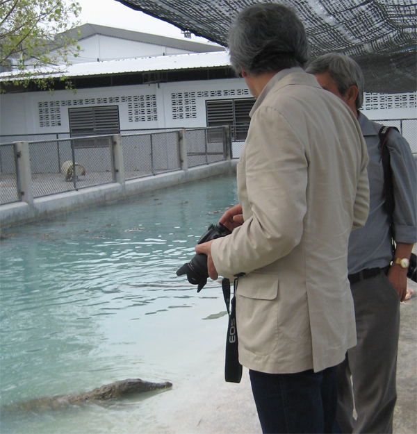眼前の鰐をものともせず、話し込む二人。