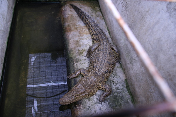 ずらり並んだ個室。一定期間飼育後に上質なワニはこの個室を与えられます。日本でも個室料金は高くつきますが、個室飼育はこちらでもとびきりの高コスト。品質には代えられません。