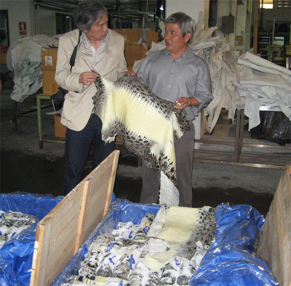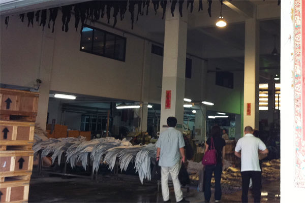 産地ではクロコダイルファームとタンニングから製品まで手がけている会社が多いのが特徴です。今回は2社ほど訪れました。