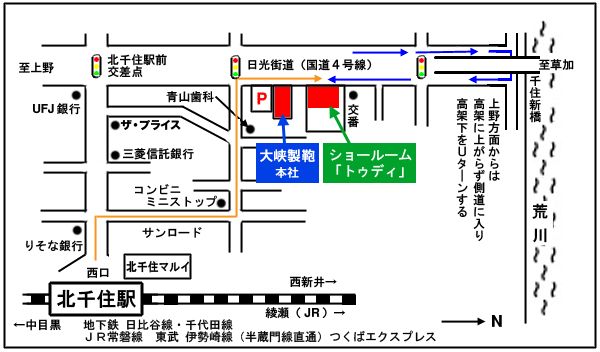 北千住駅からの順路 →